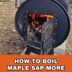 If you want your maple sap to boil down faster, you’ll need your sap to stay at a boil as much as possible. The first time I used our backyard evaporator, I was worried that the fire wouldn’t die down when I was done.