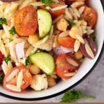 This orzo salad is a fresh, flavorful dish that’s simple to make and holds up beautifully, making it ideal for packing lunches or taking on a picnic. It’s a light yet satisfying pasta salad that works wonderfully as a side or even as a main course. Pair it with whatever you’re grilling, and it’s sure to be a hit! The recipe features tender orzo pasta tossed with cherry tomatoes, cucumbers, Kalamata olives, feta cheese, and fresh herbs. You’re going to love how easy and delicious this salad is!