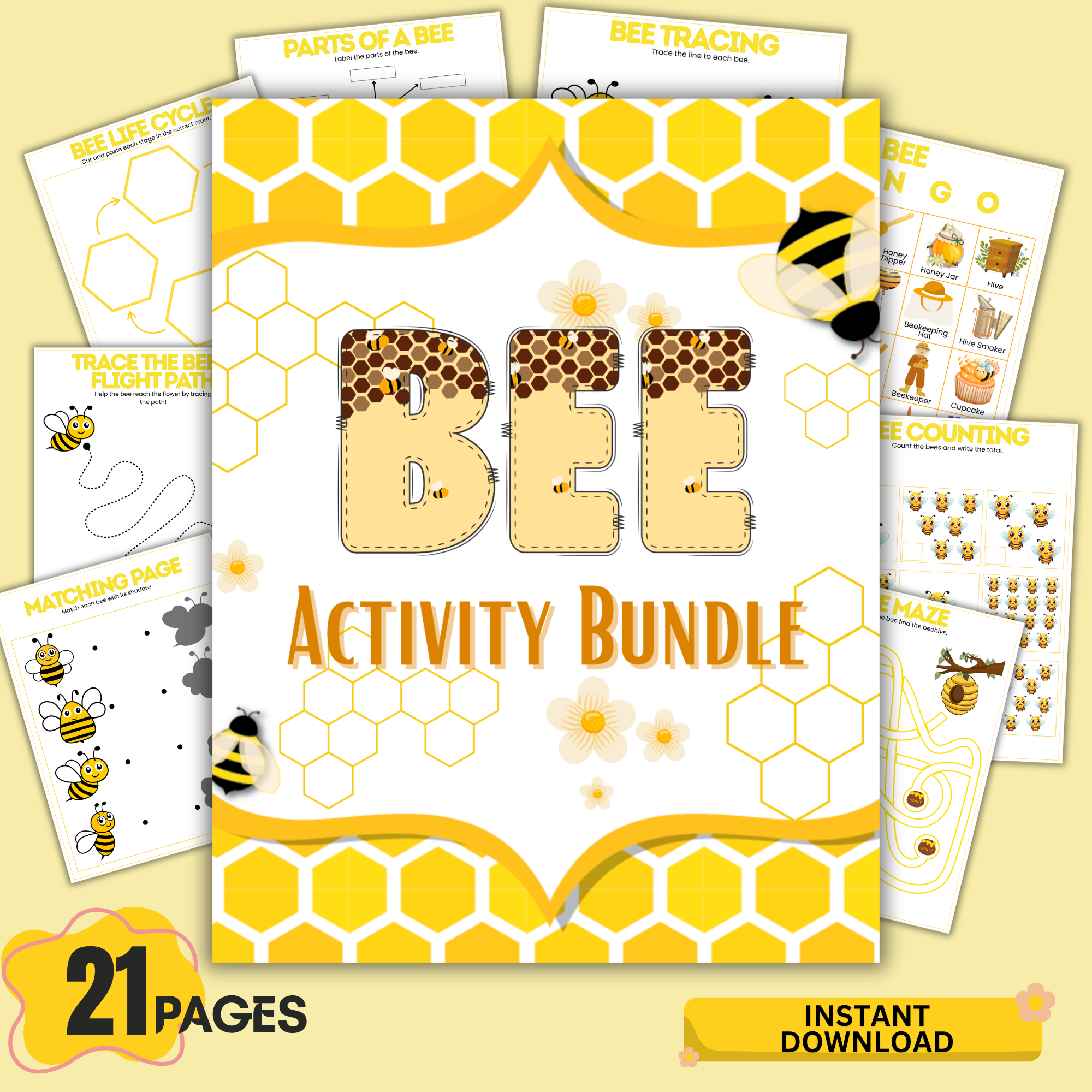 Bee Activity Bundle Printable PDF for Kids – Preschool Worksheets, Coloring, Tracing, Counting & Games