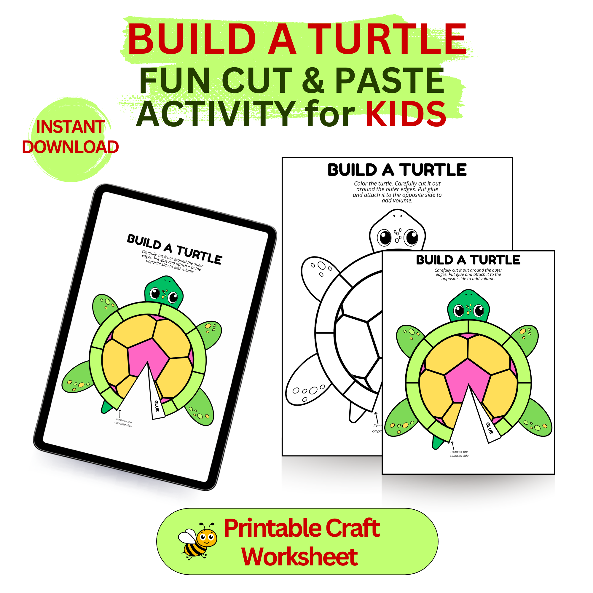 Make learning fun with this adorable Build a Turtle cut-and-paste craft activity! This printable worksheet allows children to color, cut out, and assemble their very own turtle. It’s a fun hands-on activity that helps kids develop creativity while learning about animals and nature.