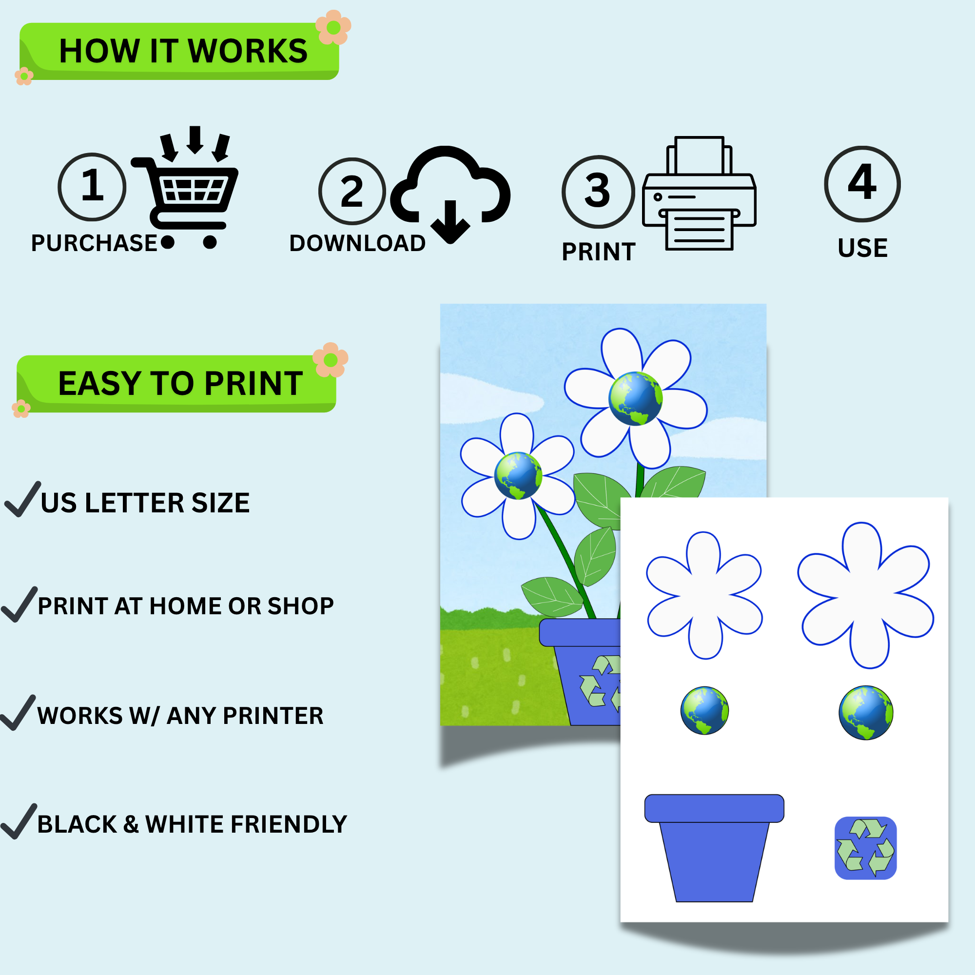 Fun and creative Earth Day Flower Pot Craft Printable PDF for kids! Includes templates, background, and instructions—perfect for preschool, classroom, or homeschool activities. Instant download and easy to use.