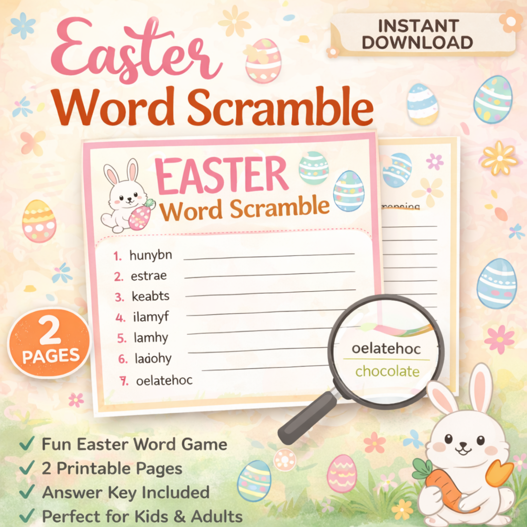 Easter Word Scramble Printable PDF – Fun Easter Party Game for Kids & Adults with Answer Key