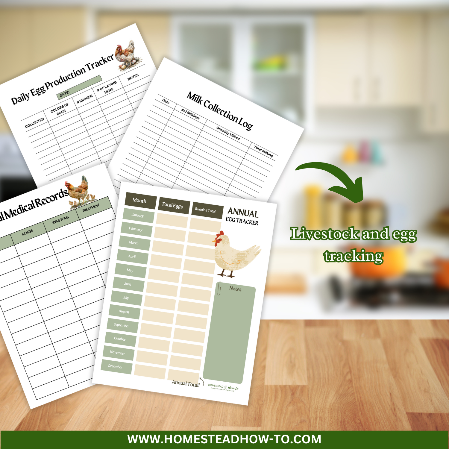 Monitor egg production and livestock health with clear, organized trackers that help you care for your animals with confidence and consistency.