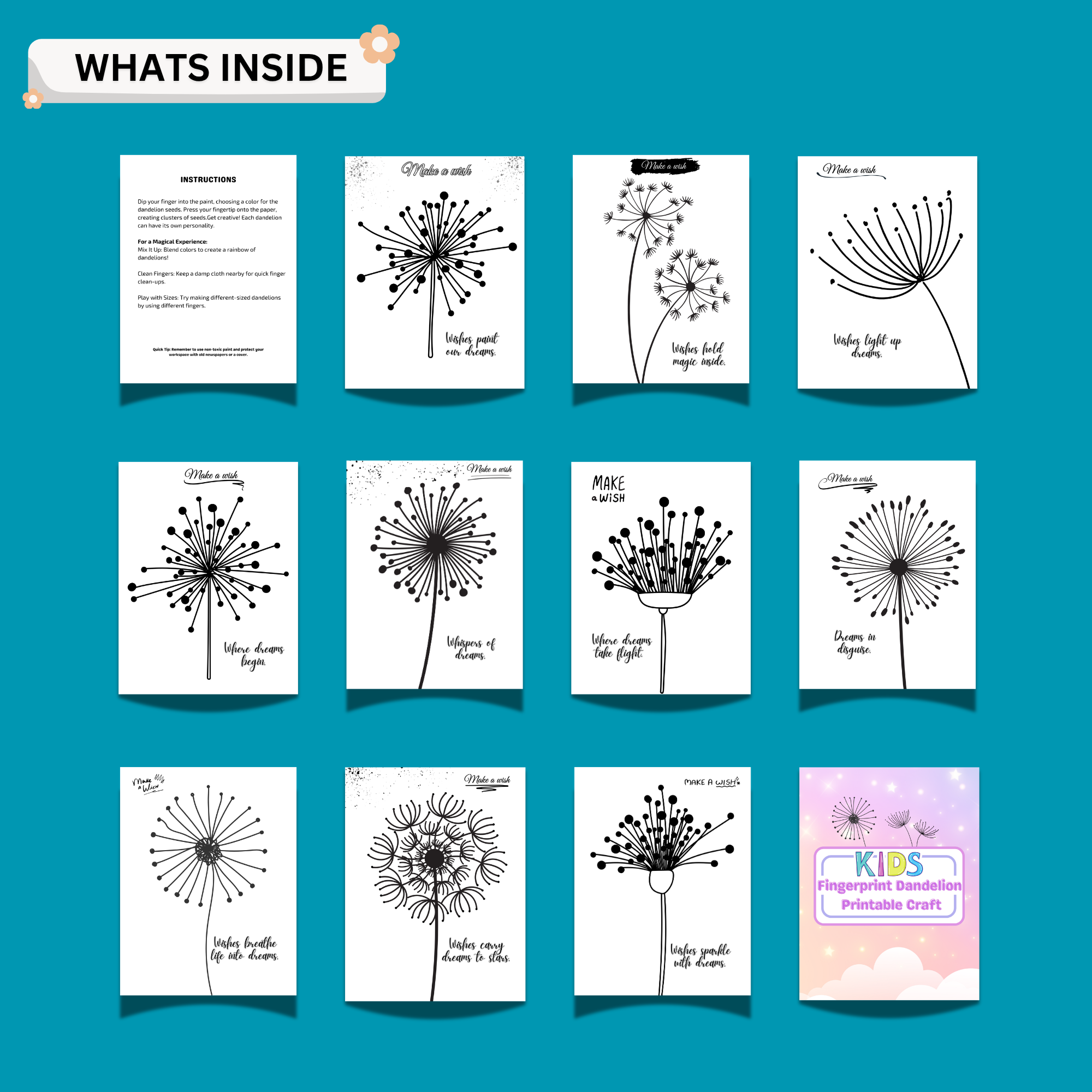 ✔ Fingerprint dandelion printable pages