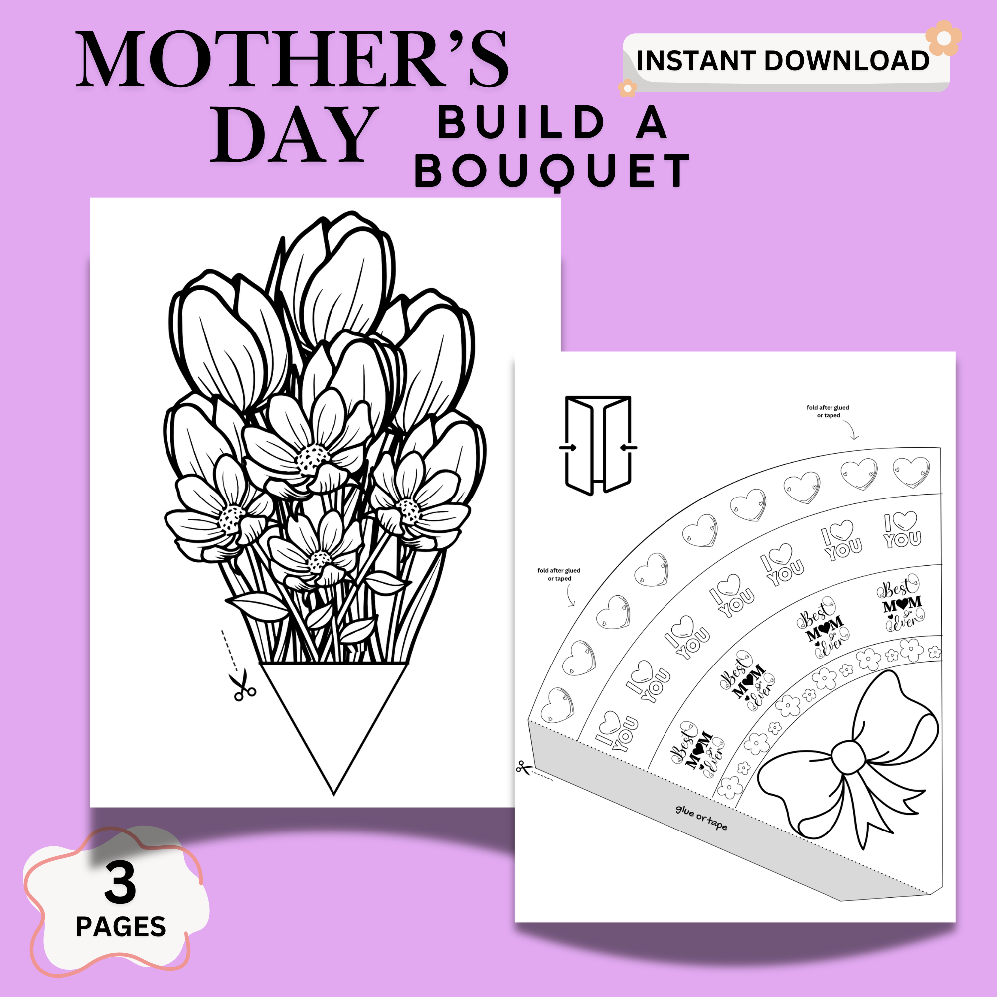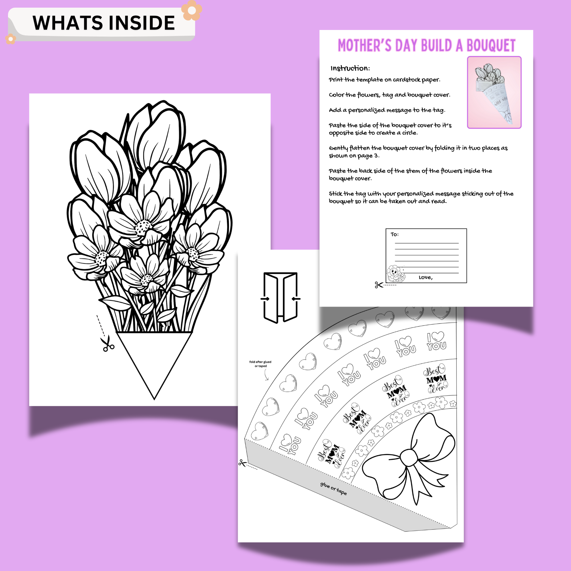 This hands-on activity allows children to color, cut, and assemble their bouquet while adding a personalized message—turning a simple craft into a keepsake mom will treasure forever.