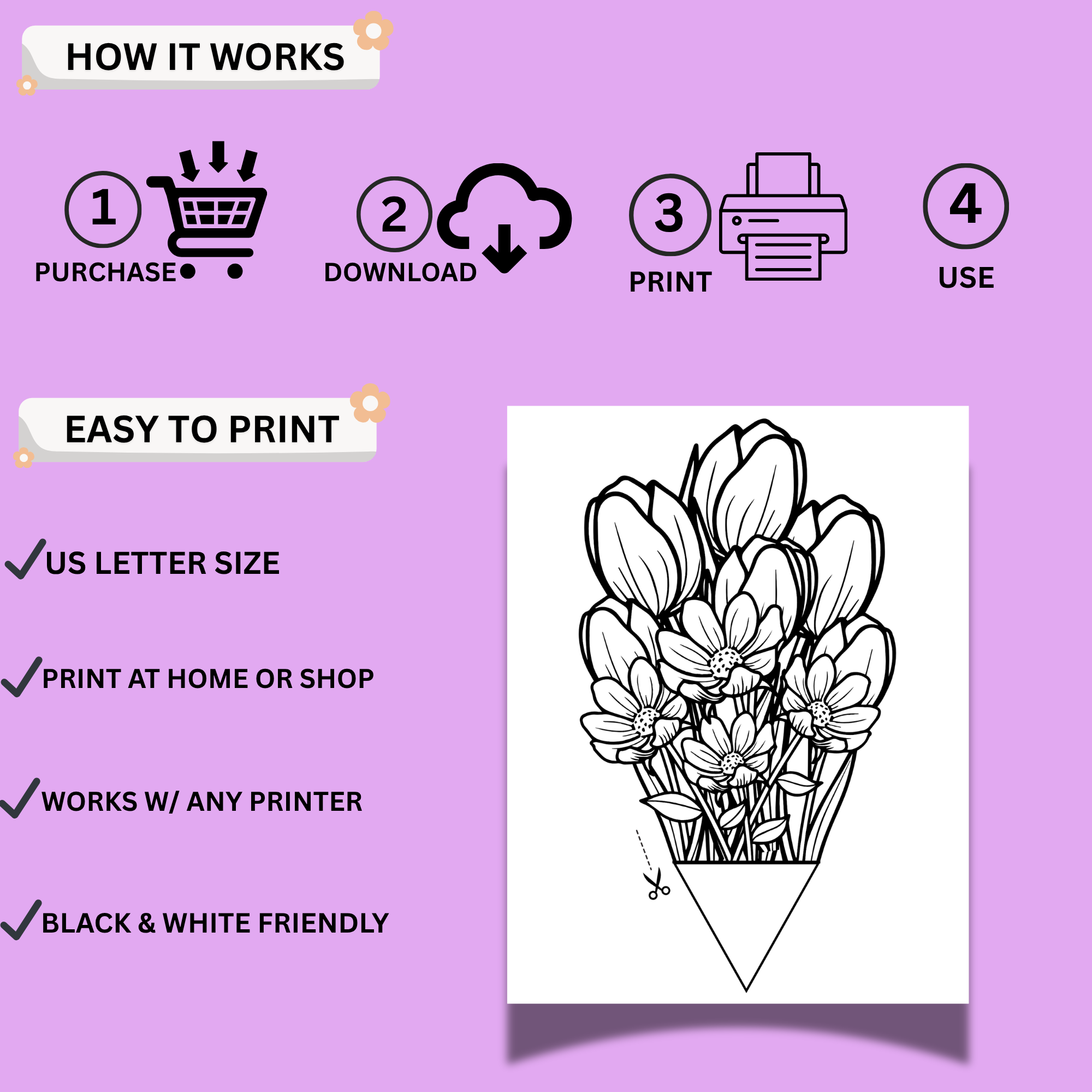 • Black & white (perfect for coloring)