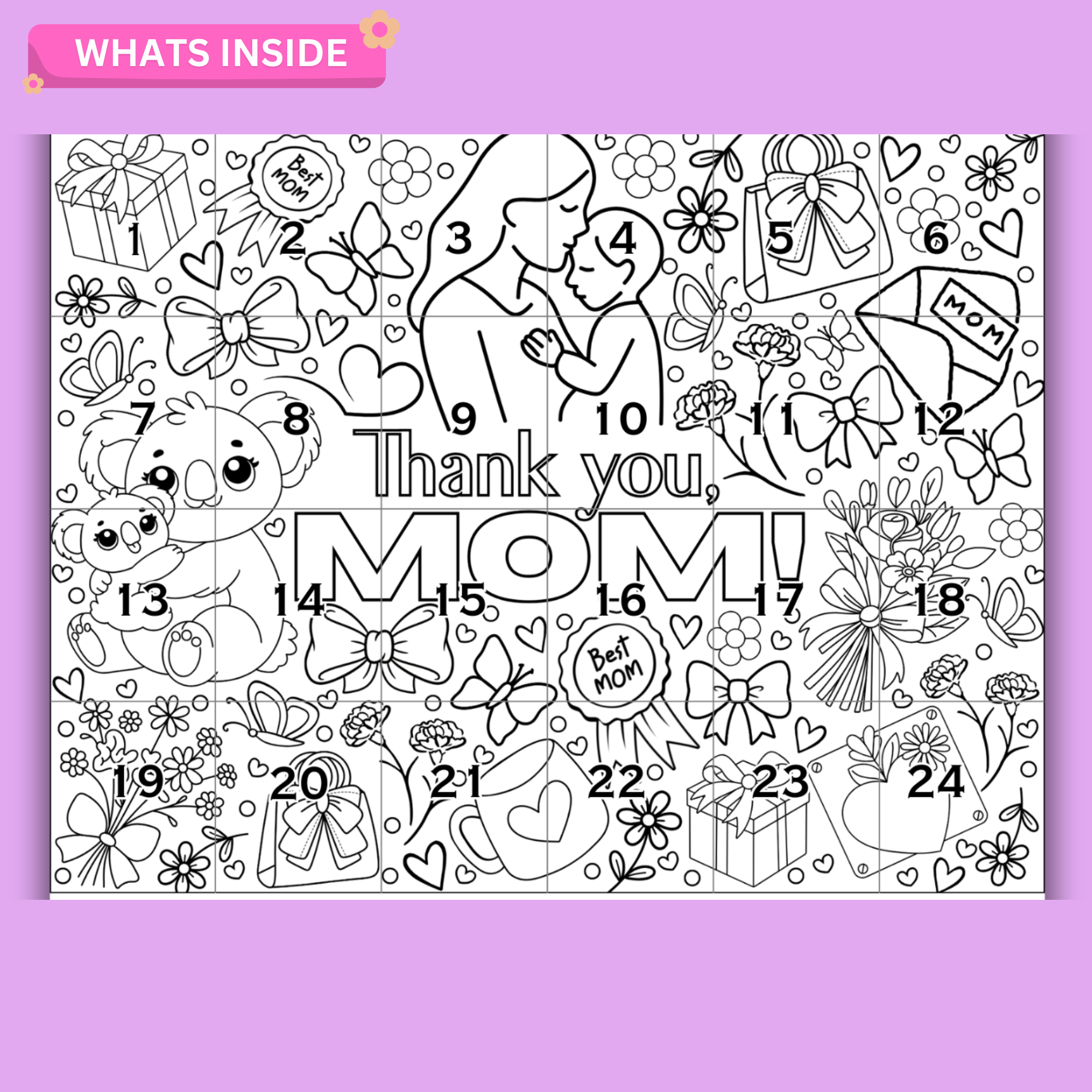👉 Once completed, it forms a large beautiful poster saying “Thank You, Mom!”