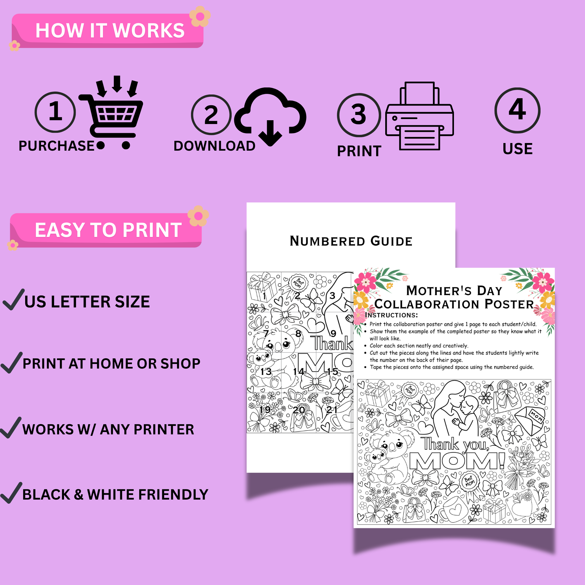 Perfect for classrooms, homeschool, and group activities, this easy-to-use PDF includes 24 coloring pages and a numbered guide for simple assembly. A creative way to celebrate moms while encouraging teamwork and creativity.