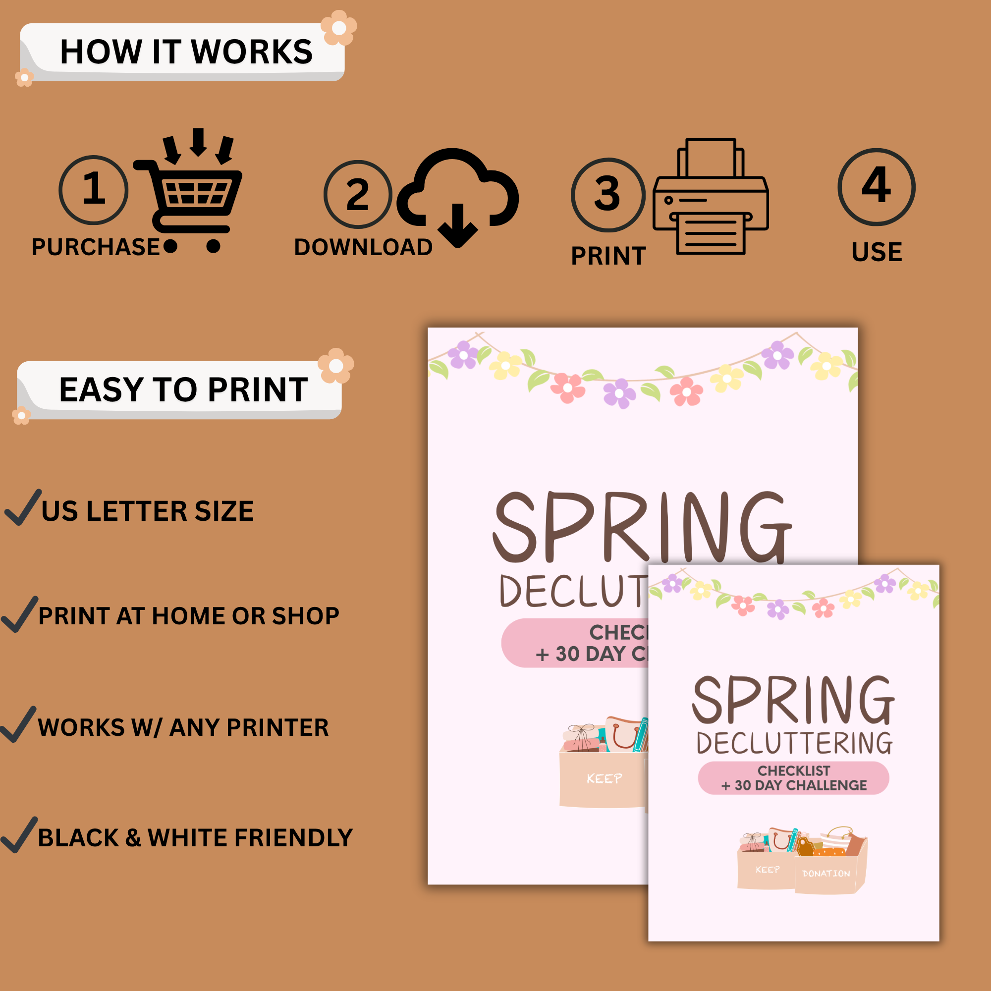 Spring Decluttering Checklist Printable PDF | 30 Day Challenge Planner, Cleaning Schedule & Home Organization