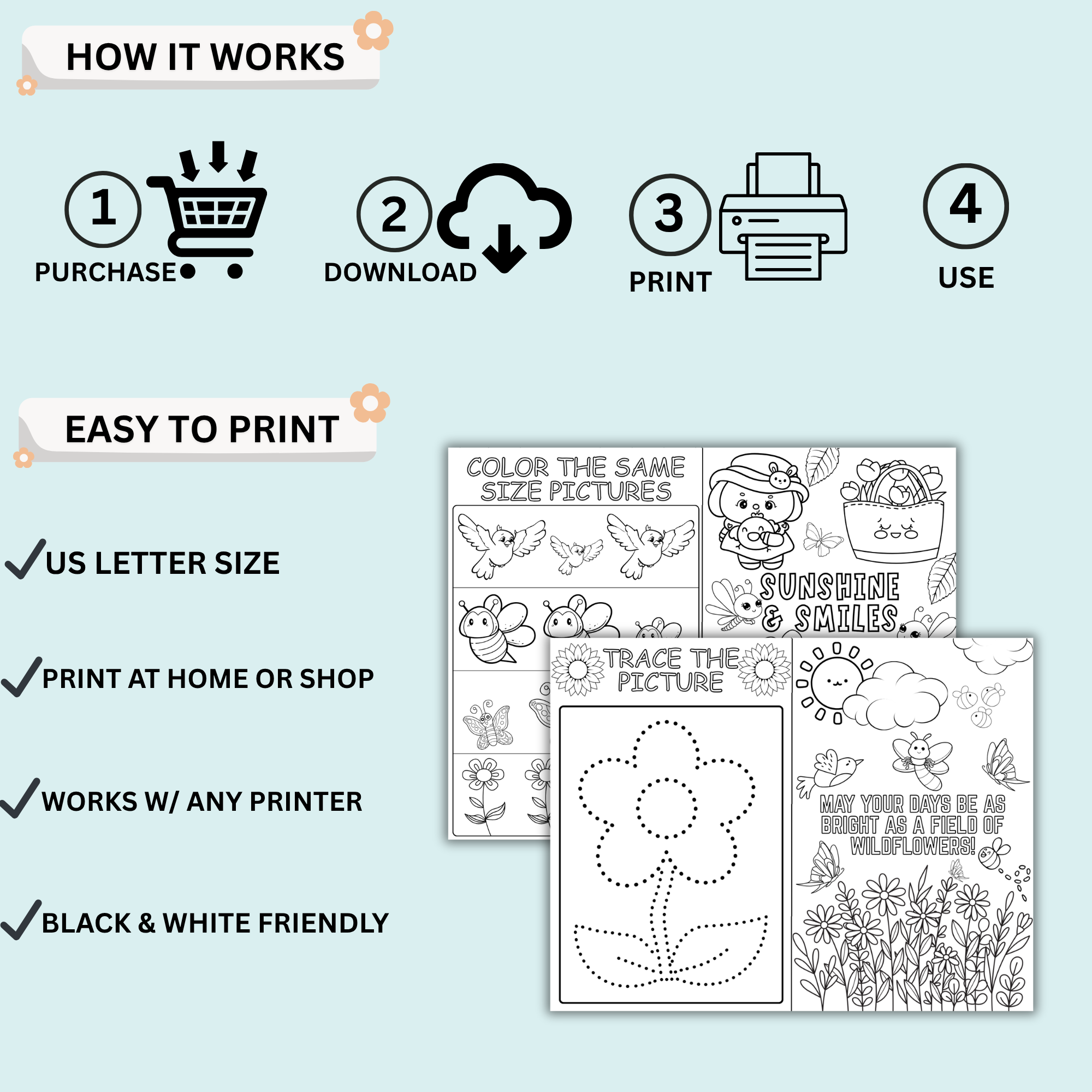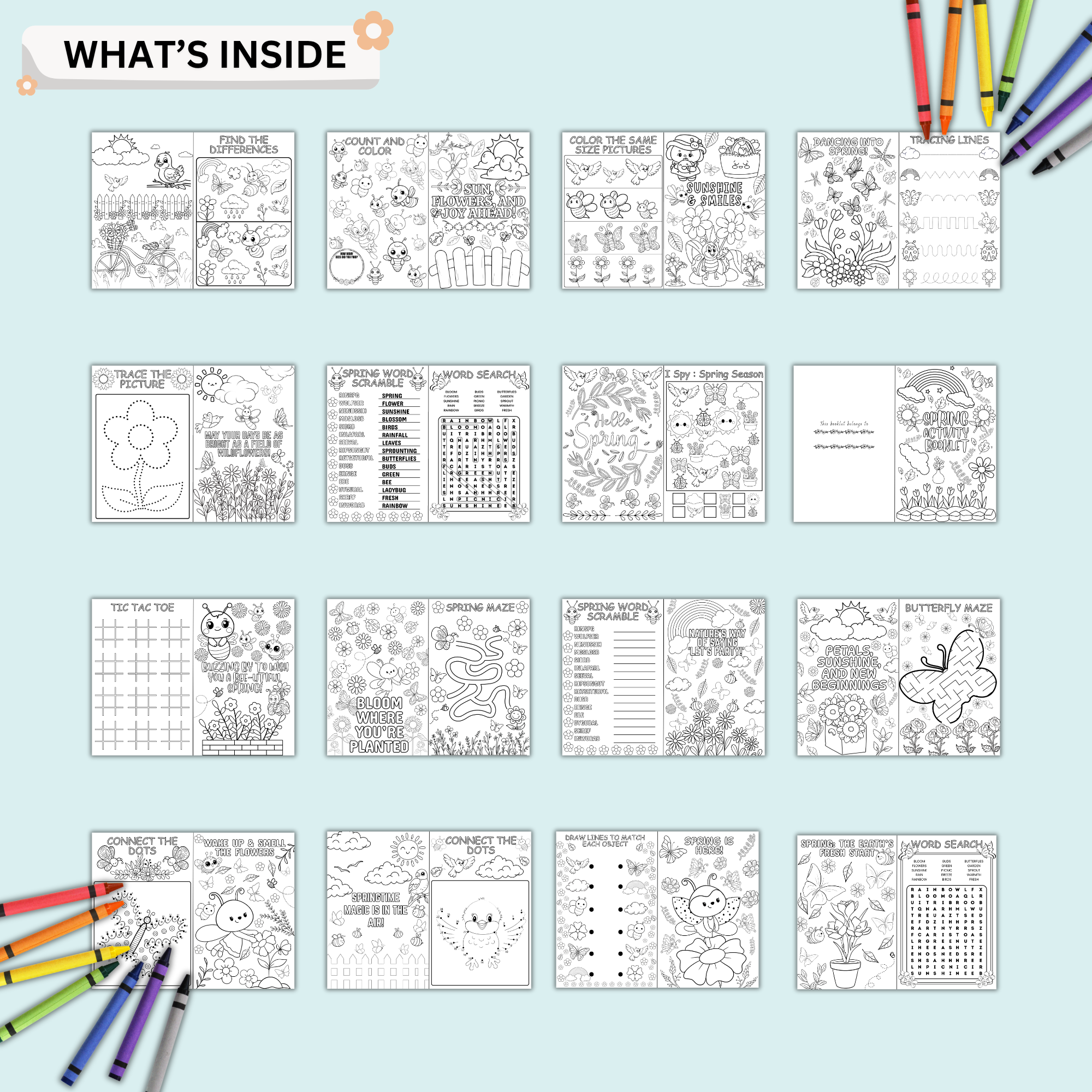 Spring Printable Activity Book for Kids | Preschool Worksheets, Coloring Pages, Word Search, Mazes & Tracing