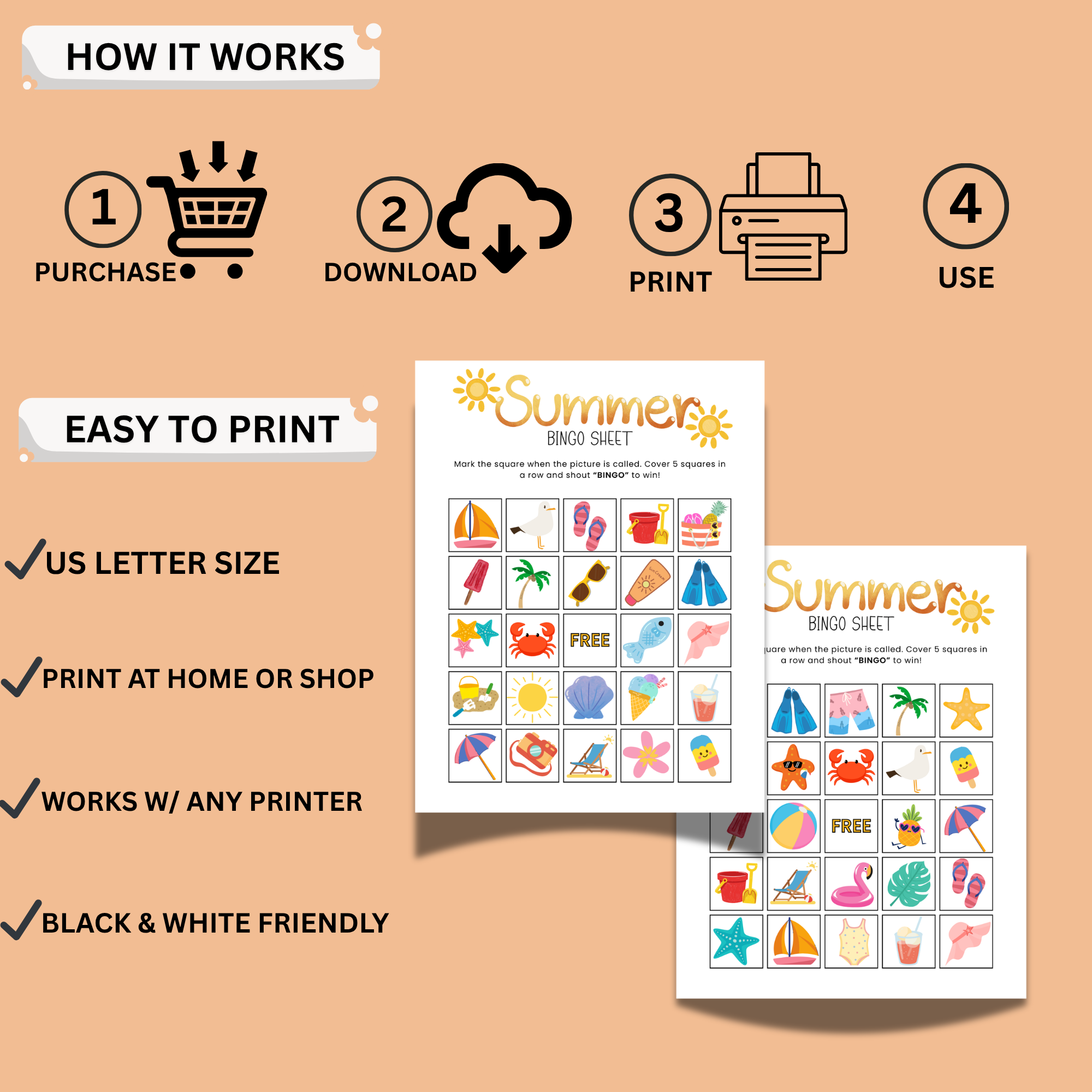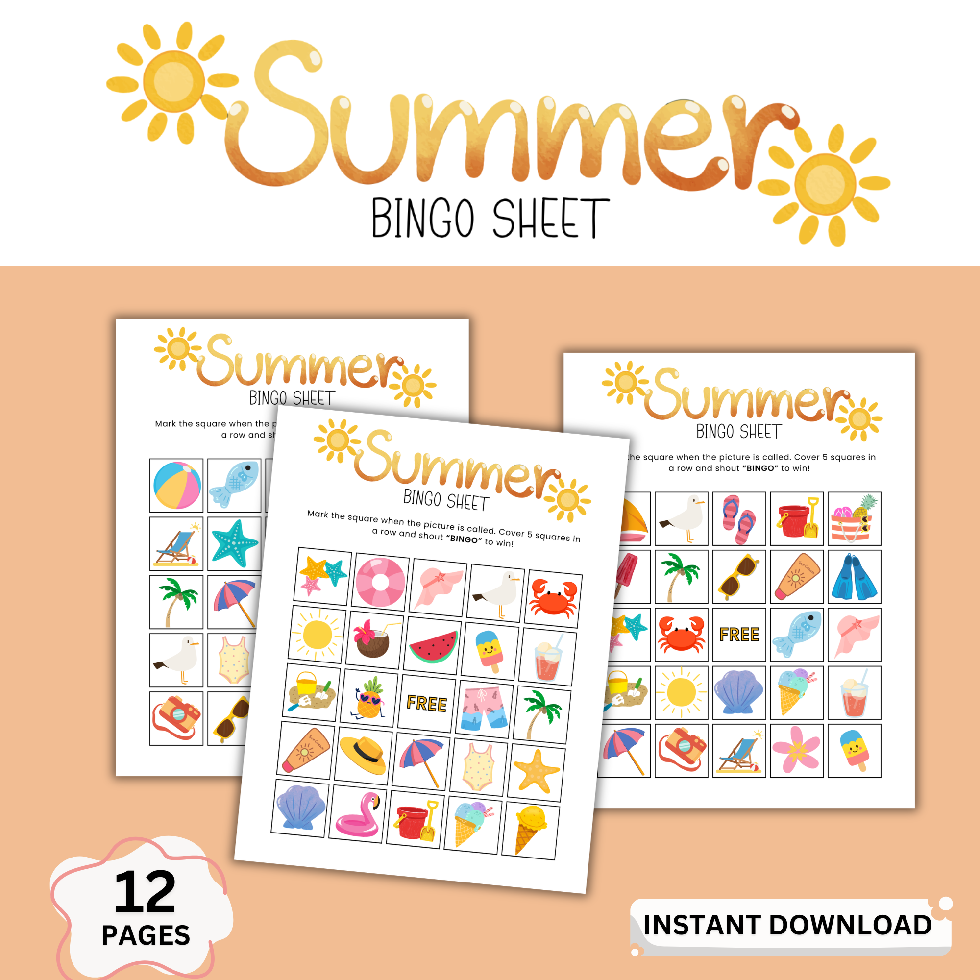 Fun and engaging summer bingo game for kids! Includes printable bingo cards and calling cards—perfect for parties, classrooms, homeschool, and family game nights. Instant download.