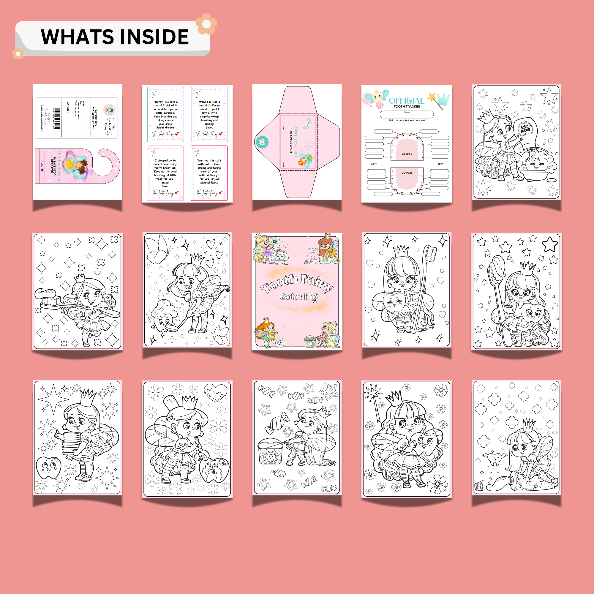 Tooth Fairy Printable Kit for Girls – Certificate, Receipt, Letters, Tooth Tracker & Coloring Pages
